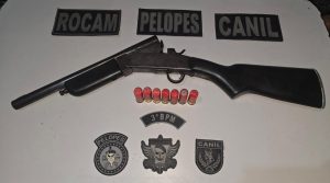 Como ele resistia à ação policial, foi necessário empregar a força para contê-lo. Havia quatro munições em seu bolso e ele revelou que o objeto que tinha abandonado era uma arma de fogo. Nas buscas no perímetro, além da espingarda, os policiais encontraram mais três munições intactas. Ele alegou usar arma na sua atividade como caseiro em uma fazenda na região. Diante dos fatos, ele foi conduzido à Central de Polícia Civil.
