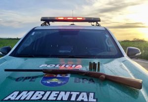 Já na fiscalização ambiental na zona rural de Campo Alegre, as guarnições Ambiental 01 e Ambiental 02, em deslocamento ao Povoado Palmeirinha, ouviram um disparo de arma de fogo. Em seguida, os militares se depararam com dois indivíduos em uma motocicleta preta, que empreenderam fuga ao avistarem as viaturas. Foi realizado acompanhamento, mas os suspeitos não foram localizados. No ponto onde estavam, os policiais encontraram uma espingarda calibre 20, além de seis munições, sendo quatro recarregadas e duas deflagradas. O material foi apreendido e encaminhado à Central de Flagrantes para os procedimentos cabíveis.