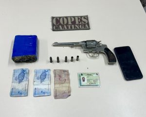 No local, foram apreendidos um revólver de calibre 38, munições, 370 gramas de maconha, dinheiro em espécie e um aparelho celular. A mulher recebeu voz de prisão e foi encaminhada para o Centro Integrado de Segurança Pública (Cisp) de Batalha.
