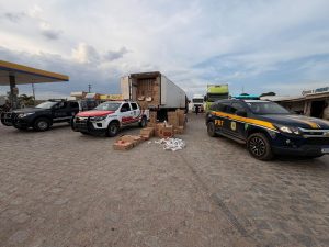 A Polícia Rodoviária Federal, PM e Receita apreenderam, na tarde desta quarta-feira (25), às 16h30, uma carga de 12.000.000 de cigarros contrabandeados do Paraguai.