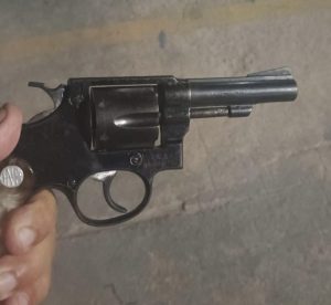 As guarnições permaneceram no local e aguardaram a chegada do suspeito. Minutos depois, o indivíduo chegou conduzindo uma motocicleta Honda Titan 150. Foi dada voz de parada e realizada a abordagem. Durante a busca pessoal, os policiais encontraram um revólver calibre .32, com duas munições intactas, escondido na cintura do suspeito. Na bolsa que ele carregava, também foi localizado um invólucro contendo cerca de 15 gramas de substância análoga à cocaína.