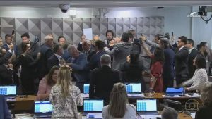 Após a votação, na quinta-feira, houve confusão e empurra-empurra na sessão. Governistas se aproximaram da mesa para protestar diante do resultado, quando começou o tumulto. Alguns socos foram desferidos durante a confusão (entenda mais abaixo).