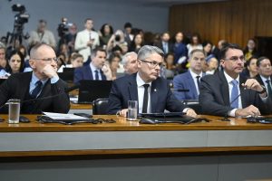 Da esquerda para a direita os senadores Fabiano Contarato (PT-ES), Alessandro Vieira (MDB-SE) e Flávio Bolsonaro (PL-RJ) (Imagem: Andressa Anholete/Agência Senado)
