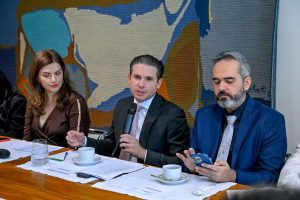 O presidente da Câmara dos Deputados, Hugo Motta, em encontro com jornalistas (Imagem: Douglas Gomes/Câmara dos Deputados)