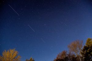 Satélites da Starlink são vistos no céu de South Funen, na Dinamarca, em abril de 2020 (Imagem: Ritzau Scanpix/Mads Claus Rasmussen via Reuters)